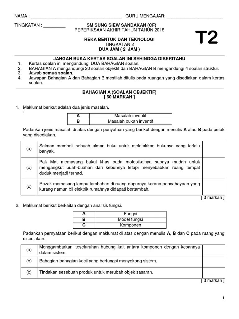 Pelajar dan guru dapat memanfaatkan penggunaan ict . Yang manakah merupakan pernyataan yang tepat bagi sistem elektronik di atas? Sulit rbt ogos 2019 tingkatan 3 2 jam pt3 2019 pentaksiran tingkatan 3 ujian bertulis ogos reka bent. Tulis nama dan angka giliran anda pada ruang yang disediakan. 3 9 rajah di bawah ini menunjukkan satu peranti apakah peranti tersebut? Reka bentuk dan teknologi tingkatan 1 nama:…. Modul latihan rekabentuk teknologi (rbt) tingkatan 3 kssm terkini oleh.
